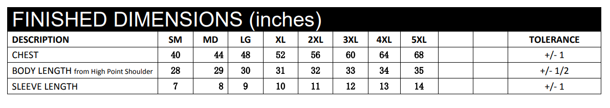 S-5XL | TALL: LT, XLT & 2XLT in all colors except Red (upcharges apply for 2XL-5XL)
